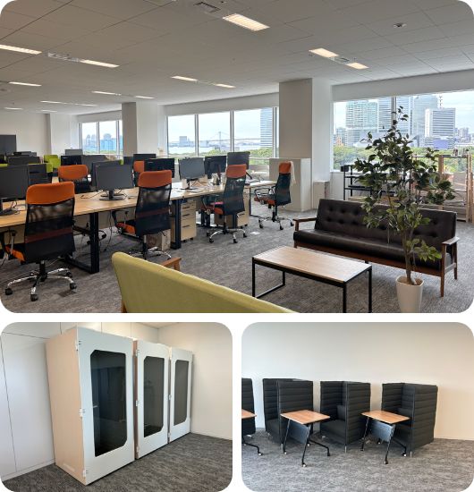 SUPERYARDでは、障がい者社員に配慮したストレスの少ないシェアオフィスと、常駐のケアスタッフをご用意しております。